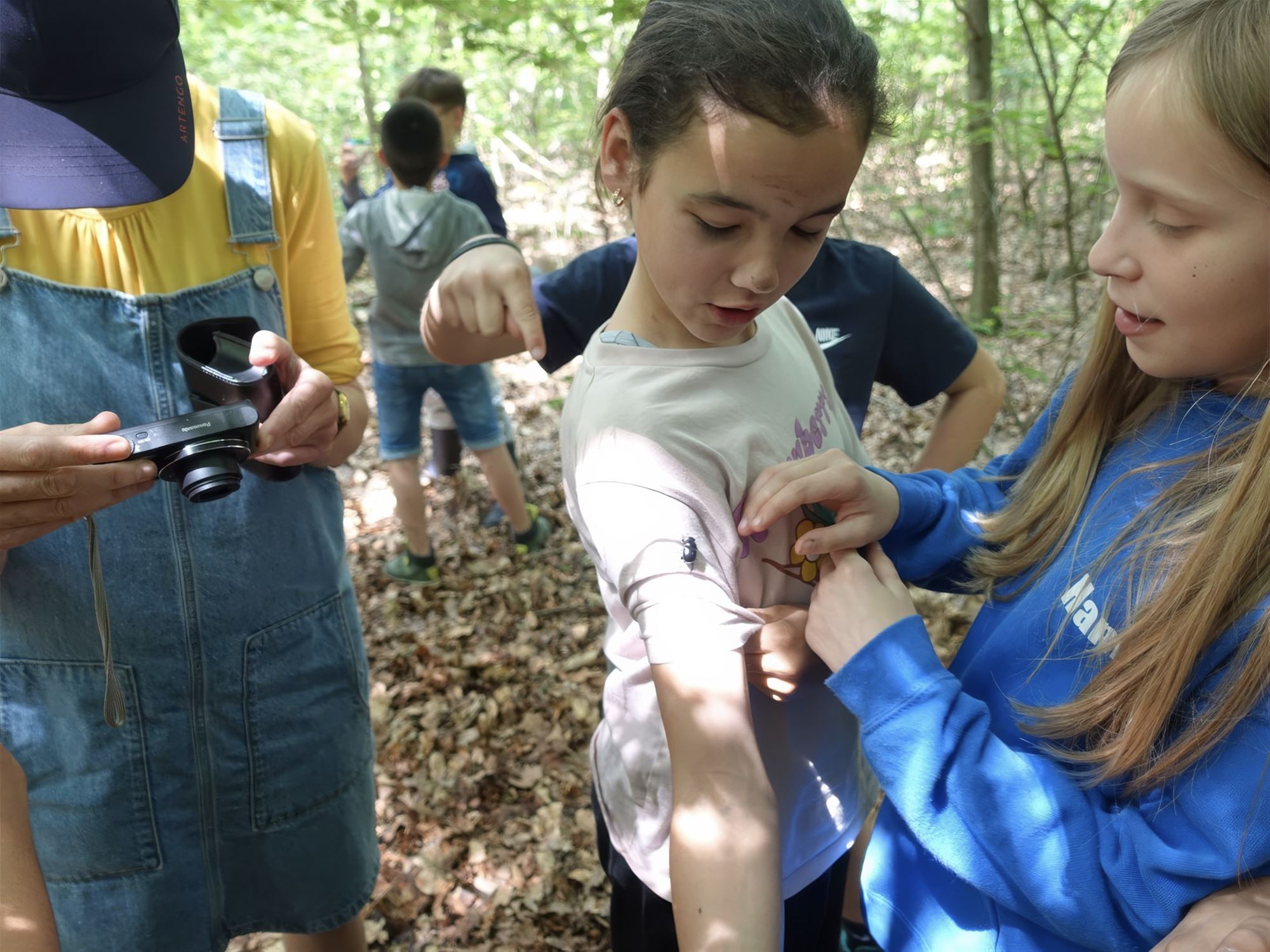 De natuur beleven als bron van elementen om als kind je fantasie en creativiteit de vrije loop te laten gaan was de volgende activiteit. Haarboskapsel, muziekmaken, sluipen als een roofdier en blootvoets lopen waren enkele vaardigheden welke hun veel voldoening gaf. Een picknick in de vrije open ruimten zorgde voor een rustgevend gevoel. Wat leeft er in de bodem van een bos, welke diertjes zorgen voor vertering van bladeren en omgevallen bomen. Pissebedden, behaarde rupsen, duizendpoot, mestkever waren enkele van gevonden bodemdiertjes. Het zijn niet moeder mooiste maar wel allernoodzakelijk voor een goed bodemstructuur, een basis voor nieuw planten en bomen.