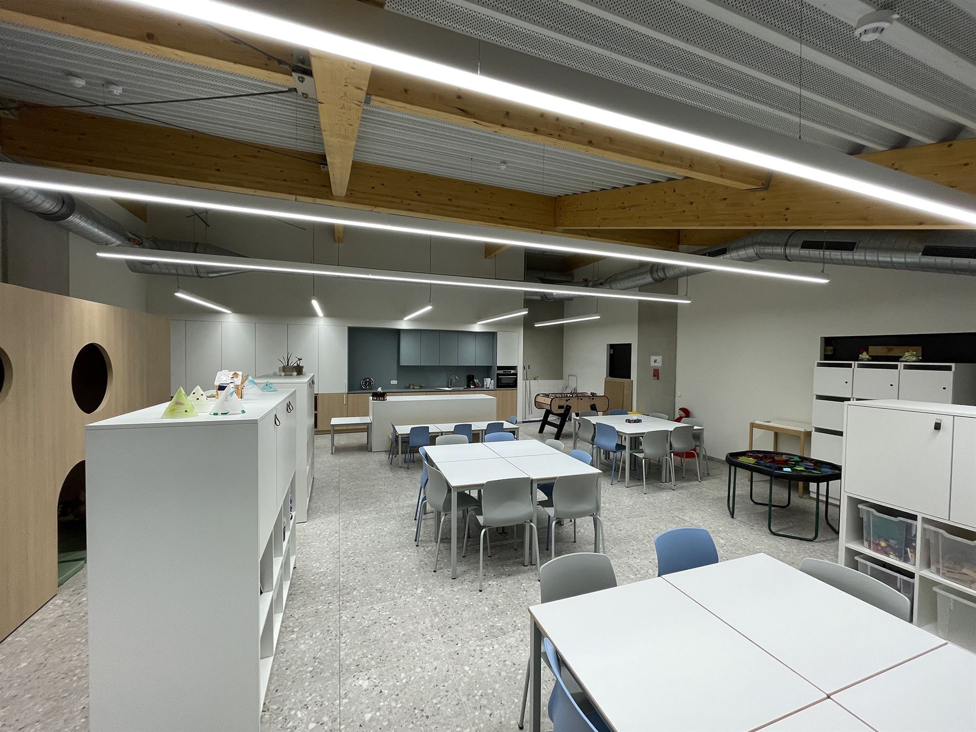 De nieuwbouw bevat ook een polyvalente ruimte die gedeeld gebruikt wordt door de kleuterschool en de kinderopvang Kadee. Overdag kunnen kleuters er leren en spelen, terwijl de ruimte na schooltijd dienstdoet als naschoolse opvang. "Door deze gedeelde aanpak benutten we de ruimte optimaal en creëren we een fijne omgeving waarin kinderen zich kunnen ontwikkelen," voegt schepen Seutens toe.