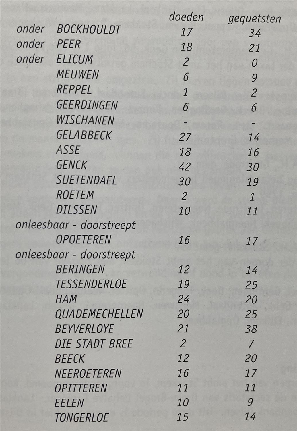 Foto hierboven: aantal doden en gewonden van 6 december 1648.
