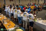 Terug naar zaterdagmiddag: de renners kwamen met wat vertraging aan, als gevolg van een valpartij onderweg. Na aankomst konden ze hun fiets meteen parkeren en aanschuiven aan het pastabuffet in de sporthal. Sommigen zouden daarna terugfietsen naar Mechelen, anderen werden afgelost.