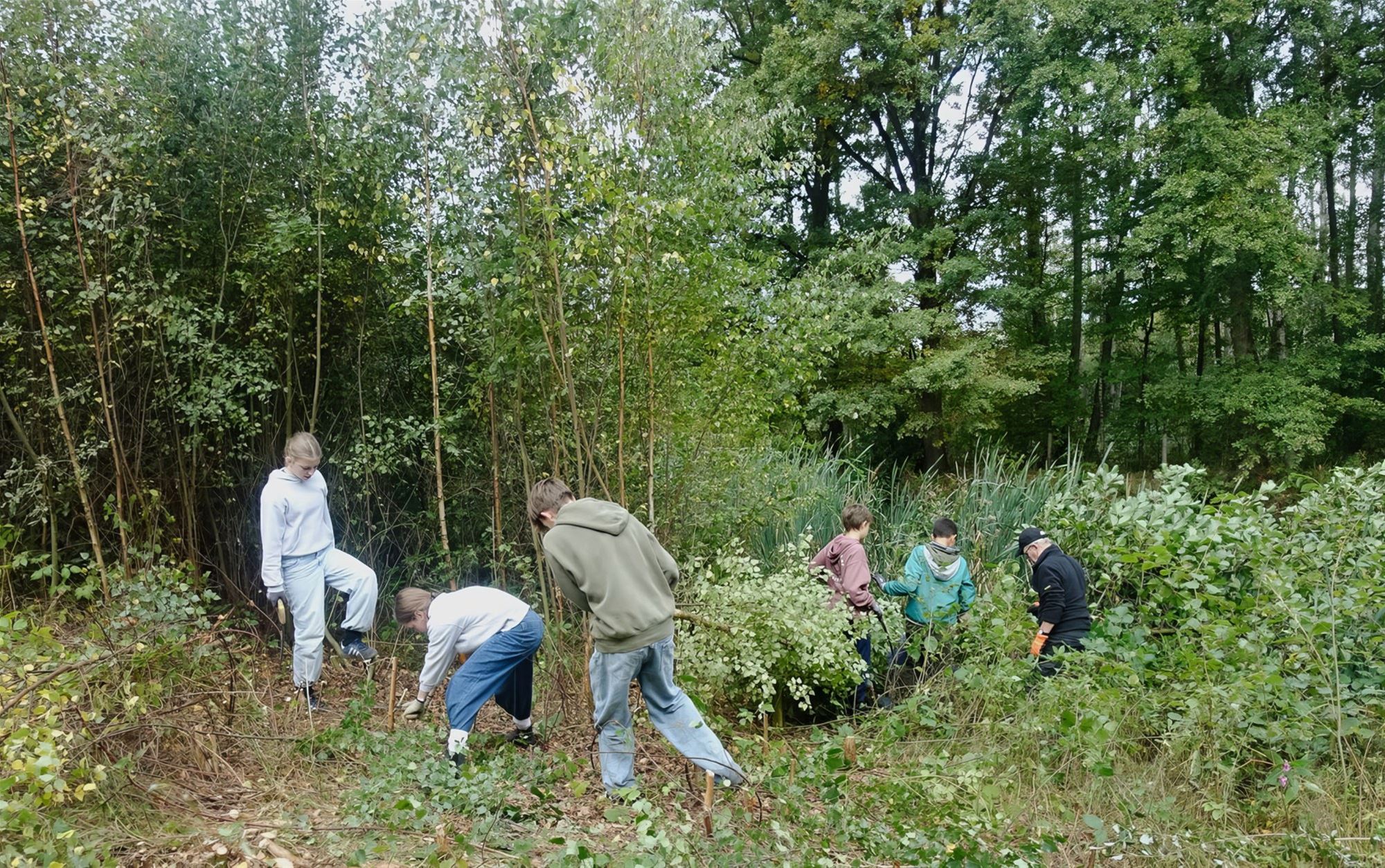 Onder begeleiding van vier leerkrachten én vrijwilligers van Natuurpunt Meeuwen-Gruitrode & Peer gingen de leerlingen enthousiast aan de slag met kniptangen en handzaagjes.