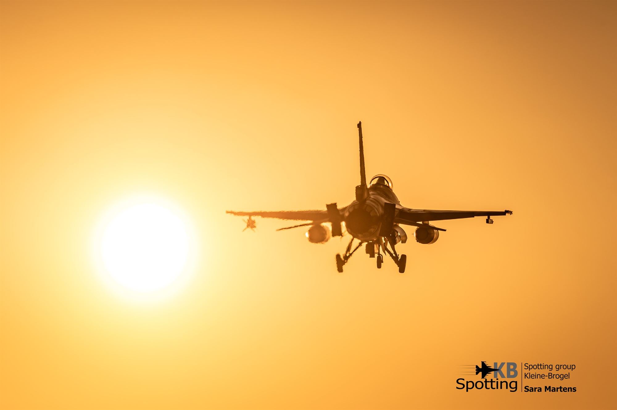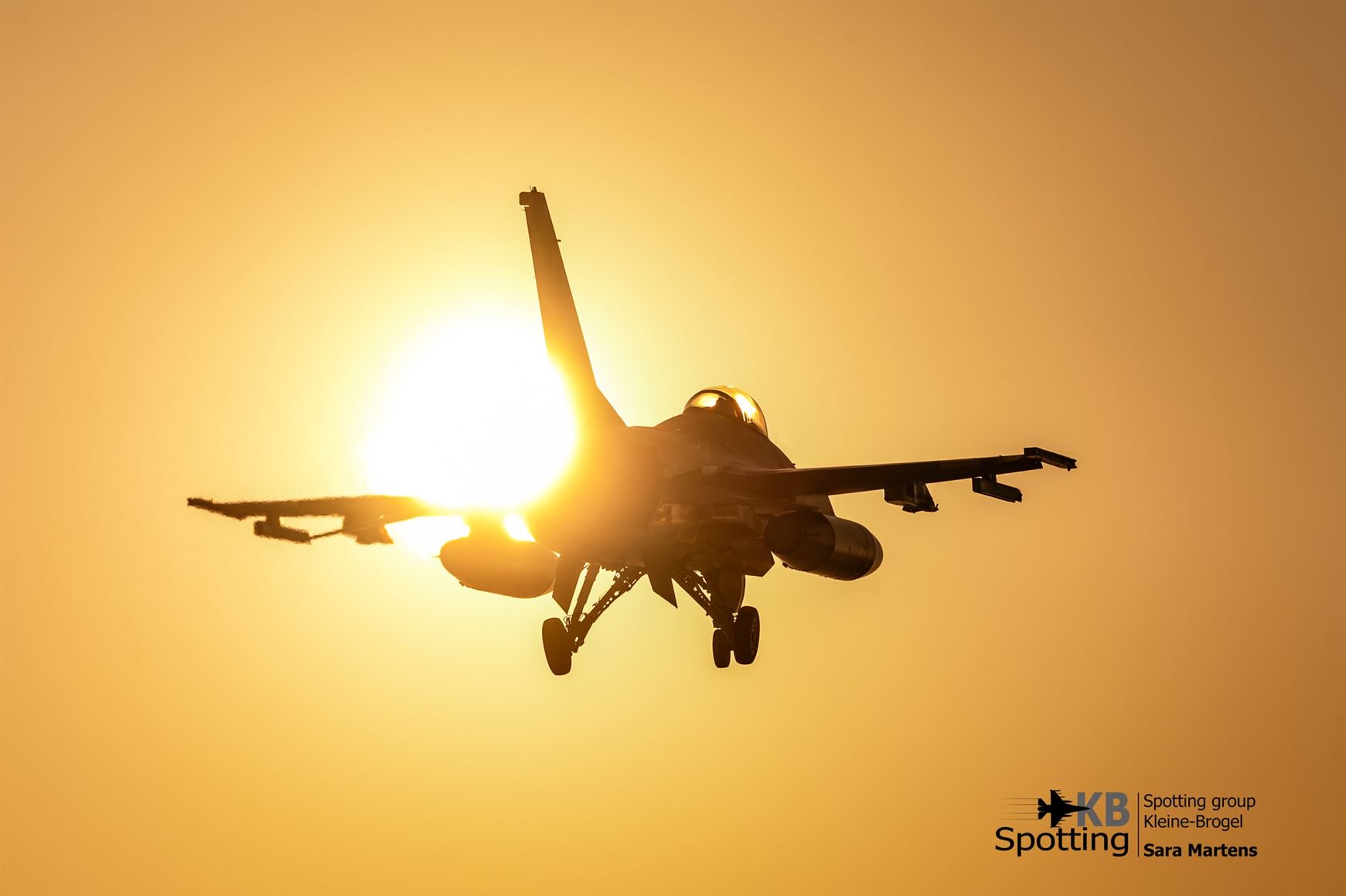 Sara Martens stond maandag in de late namiddag aan den draad in Kleine Brogel. Het was de eerste werkdag van het nieuwe jaar voor de piloten van de 10de Tactische Wing, en dat leverde – dankzij de laagstaande zon én de fotografische skills van Sara – ronduit prachtige beelden op.