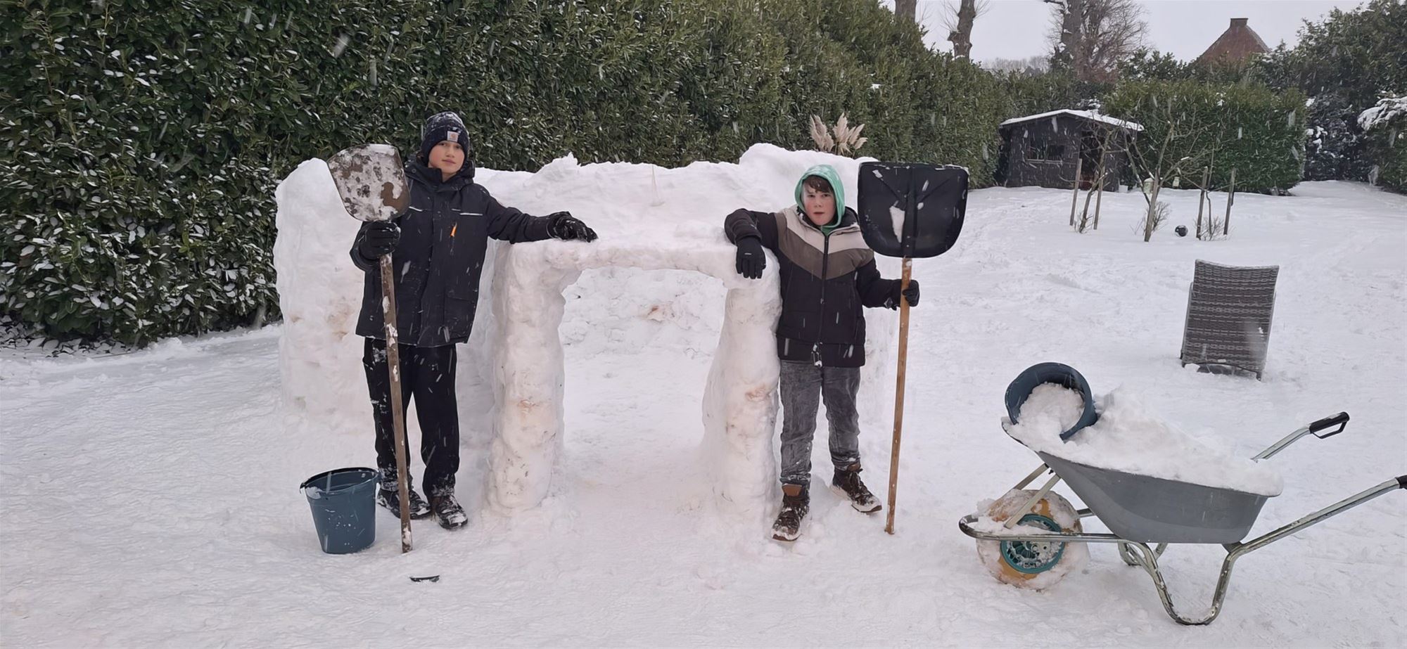 een echte iglo. Met schep en sneeuwblokken groeide het winterse bouwwerk al snel uit tot een opvallende creatie.