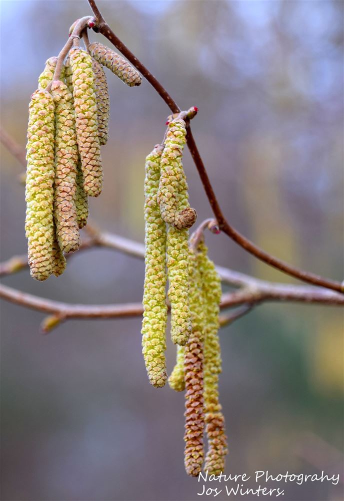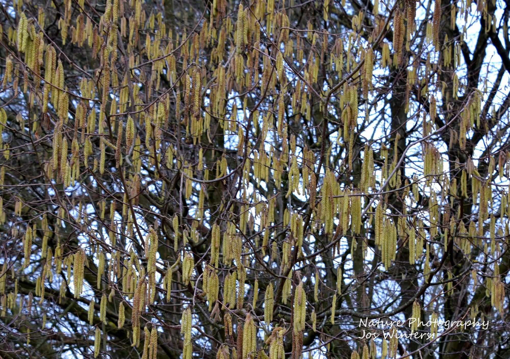 hazelaar staat momenteel in bloei en laat zijn langwerpige, gele katjes zien. Ze bloeien doorgaans tussen december en maart en zorgen voor een zacht, bijna lentekleurig accent in het winterse landschap.