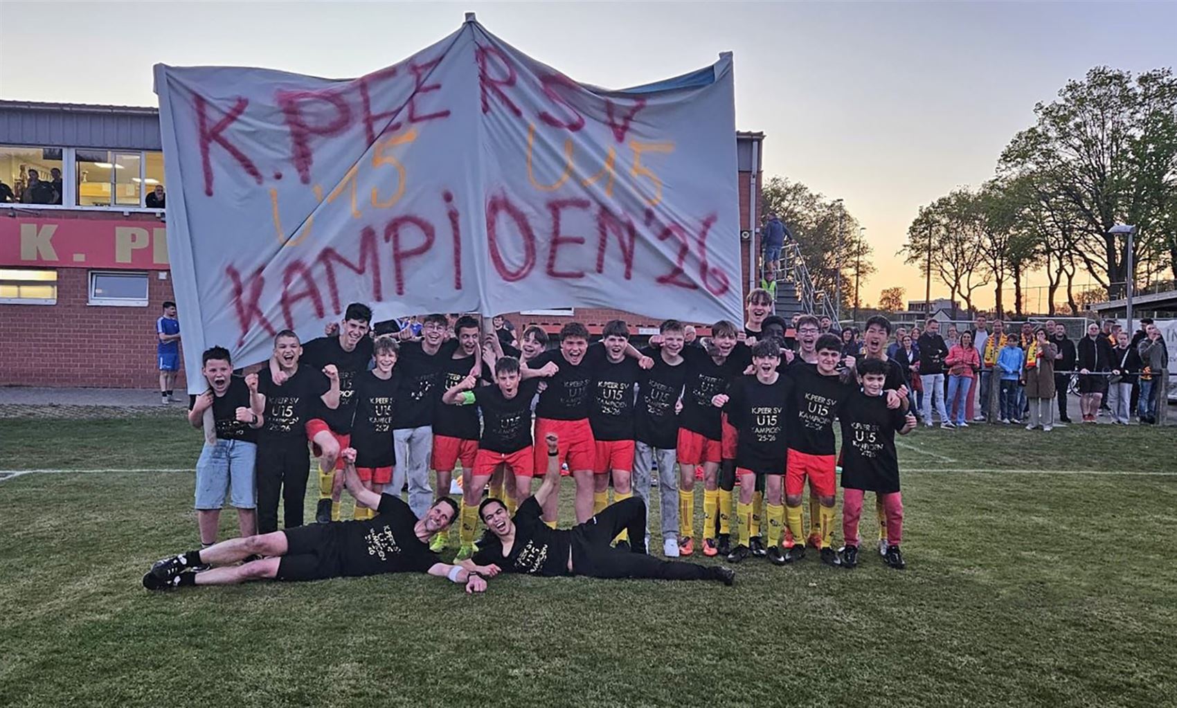 De jonge voetballers kroonden zich tot kampioen en mochten na een sterk seizoen de titel vieren. Voor spelers, trainers, begeleiders en supporters was het een mooi moment om samen van te genieten.