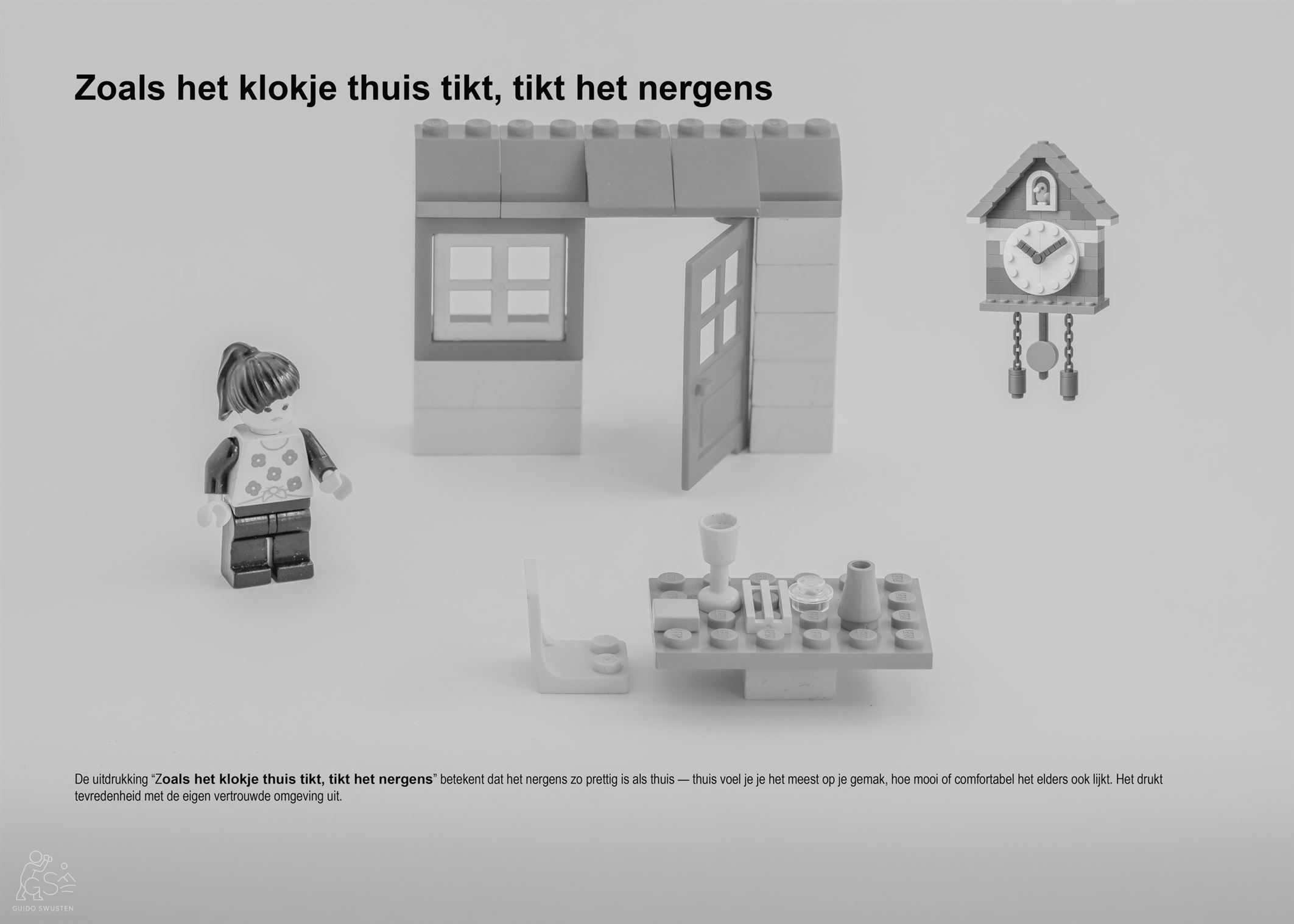 Zoals het klokje thuis tikt, tikt het nergens” betekent dat het nergens zo prettig is als thuis — thuis voel je je het meest op je gemak, hoe mooi of comfortabel het elders ook lijkt. Het drukt tevredenheid met de eigen vertrouwde omgeving uit.