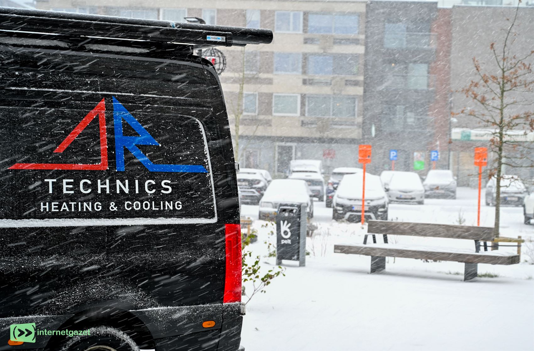 (Jan Alders)Een sneeuwstorm raast op dit moment over Pelt. Dwarrelende vlokken, witgeslagen straten en ijzige wind zorgen voor een echt winters decor.
