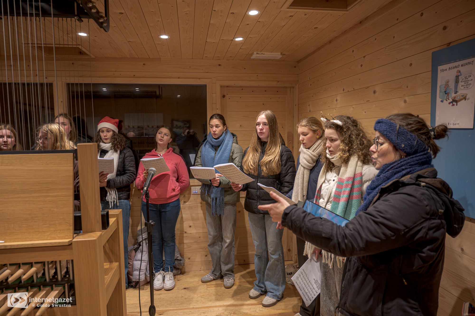 jeugdkoor van de Kunstacademie Noord-Limburg o.l.v. dirigente Sarah Robaeys, dat de harten verwarmde. Tussen de kraampjes klonken zachte, sprankelende kerstliederen die meteen een vleugje magie over de markt lieten dwarrelen.