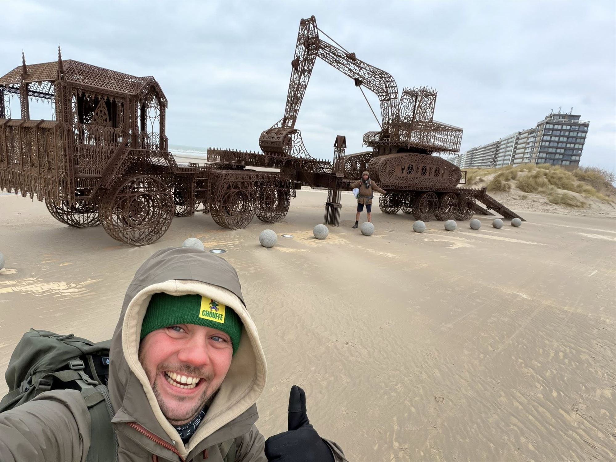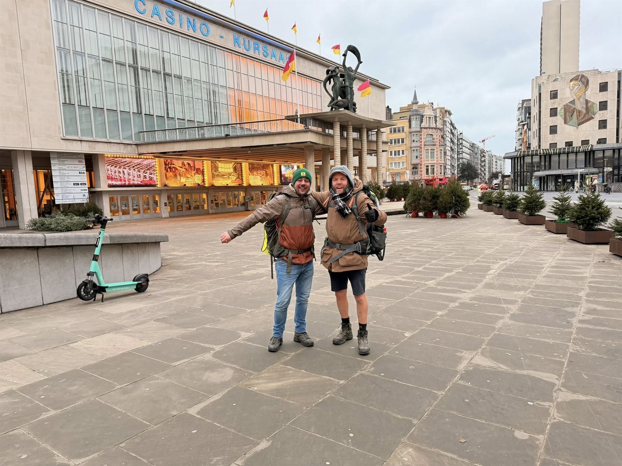 Aan het gemeentehuis van De Panne werden ze zelfs uitgezwaaid door burgemeester Wim Janssens — een mooi extra duwtje in de rug bij de start. Om het helemaal correct te doen, wandelden ze eerst nog een stuk terug richting Frankrijk: de bedoeling is immers om de volledige Belgische kust af te leggen, van grens tot grens. Hans en Emile doen hun verhaal: