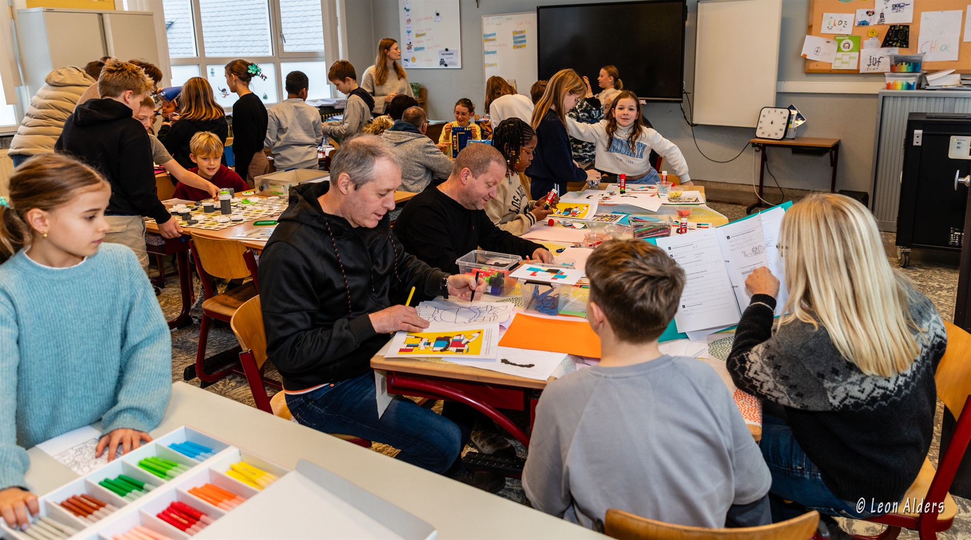 Op de speelplaats werden ze hartelijk ontvangen door directrice Sigi Bielen, waarna ze in kleine groepjes een kijkje mochten nemen in het klasgebeuren. Ze maakten kennis met de juf, speelden samen met de kinderen een spelletje en zagen van dichtbij hoe het er elke dag in de klas aan toe gaat.