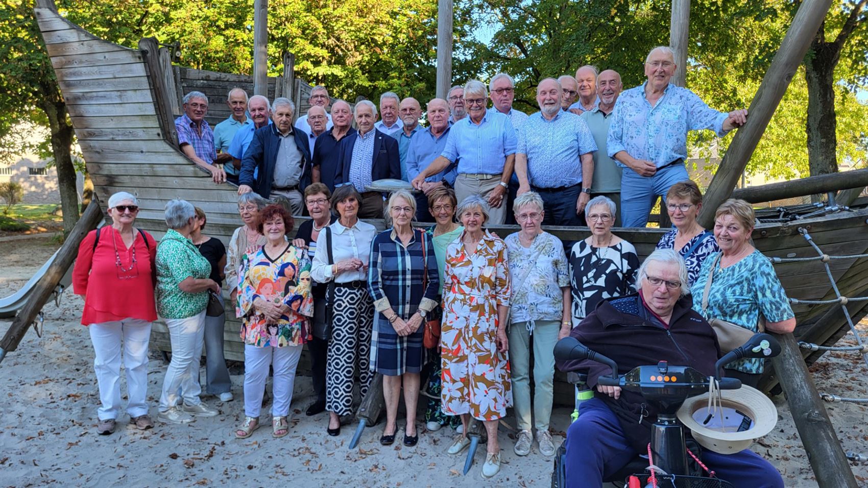 Terug aangekomen in ’t Pelterke werd onder een stralende najaarszon eerst genoten van een receptie op het terras, gevolgd door een heerlijk koud buffet. Een powerpointpresentatie met oude dorpsbeelden én foto’s uit de jeugdjaren van de aanwezigen zorgde voor heel wat herkenning en een ideale aanzet tot geanimeerde gesprekken.