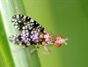 gehakkelde aurelia. De vlinder is op zichzelf al mooi, maar ook de rups mag gezien worden. Kijk eens naar dat kleurenverschil op de rug, en naar de segmentjes opzij; daar lijkt telkens