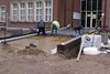 de nieuwe fontein getest en... ze werkt! Alles is dus klaar om de vernieuwde Oude Markt officieel open te stellen.