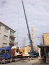 Boseind worden de grote middelen ingezet. Met de grote kraan, waarvan we de aankomst enkele dagen geleden meldden, worden nu betonnen steunpilaren in de ondergrond aangebracht.