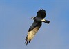 bruine kiekendief. Jonge spreeuwen gaan er bij hem wel in...