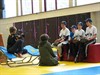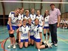 Staande: Raf Bloemen, Franky Alders, Bart Hulsbosch, Nancy Jansen, Hilde Habraken, Annick Clijsters, Kris Cleymans en meester Albert Cardinaels;