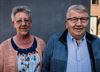 Jos Fuchs en Toos van den Putte, uit de Zonnedauwlaan, een receptie aan naar aanleiding van hun