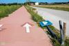 Zandstraat heeft recent een nieuwe gedaante gekregen, met een smalle grijze rijstrook voor de auto's en een brede rode rijstrook voor de fietsers. Die laatsten kunnen mekaar vlot kruisen, maar voor auto's is dat iets moeilijker, vandaar dat er om de zoveel meter '