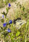 Koninginnenpage ziet zitten, en je bent met de fiets: dan stap je even af, je haalt de smartphone boven om er een mooi plaatje van te nemen. Deze vlinder is ze nog nagelopen om die op zijn mooiste zijde de fotograferen. Hier geniet ie van de nectar van het slangenkruid.