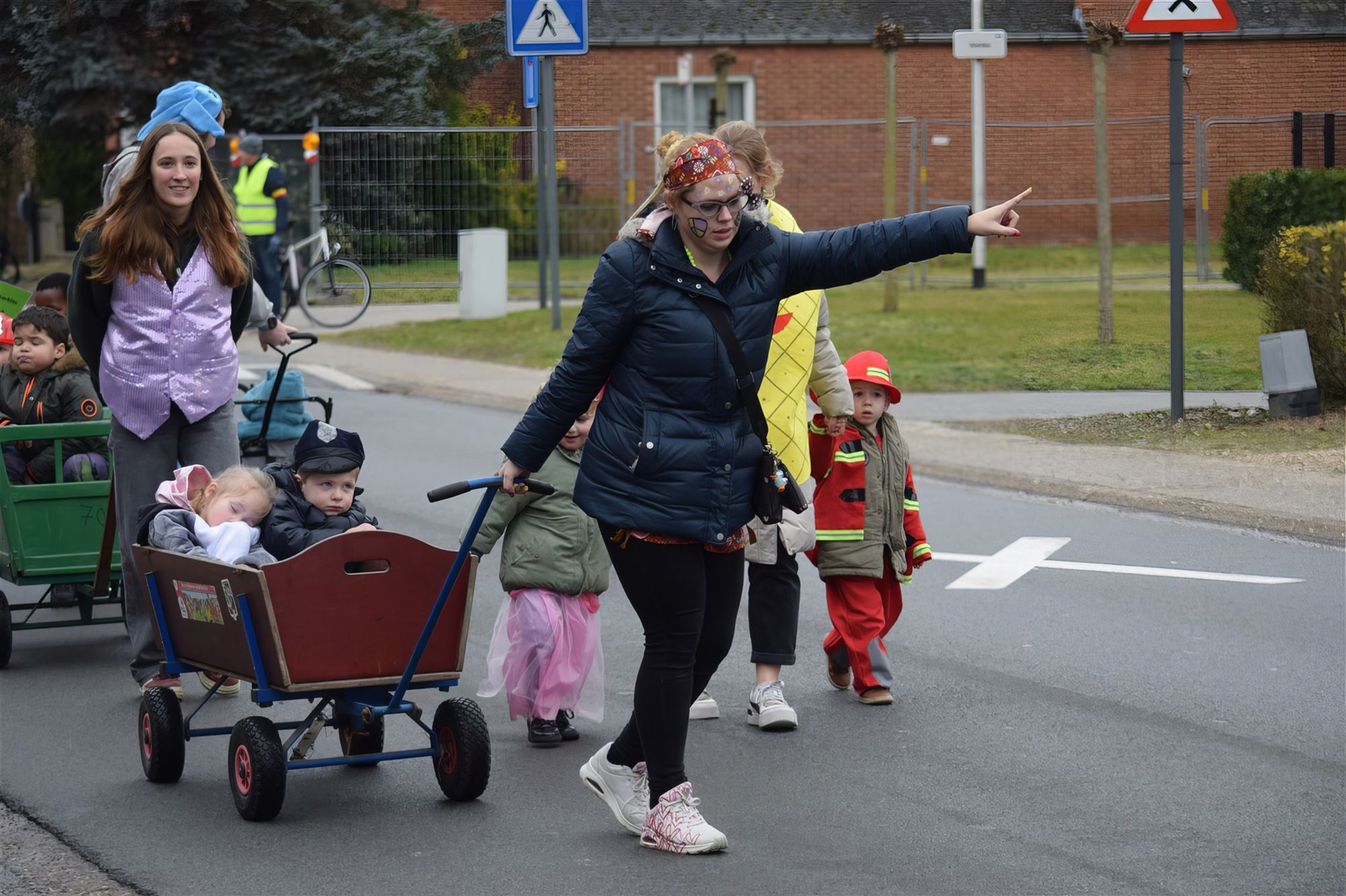 Na deze energieke start was het moment aangebroken om de stoet door de straten van de wijk op gang te trekken. Blikvanger van de namiddag was zonder twijfel de échte carnavalswagen, waarop de ‘zesdes’ een leuk feestje konden bouwen.