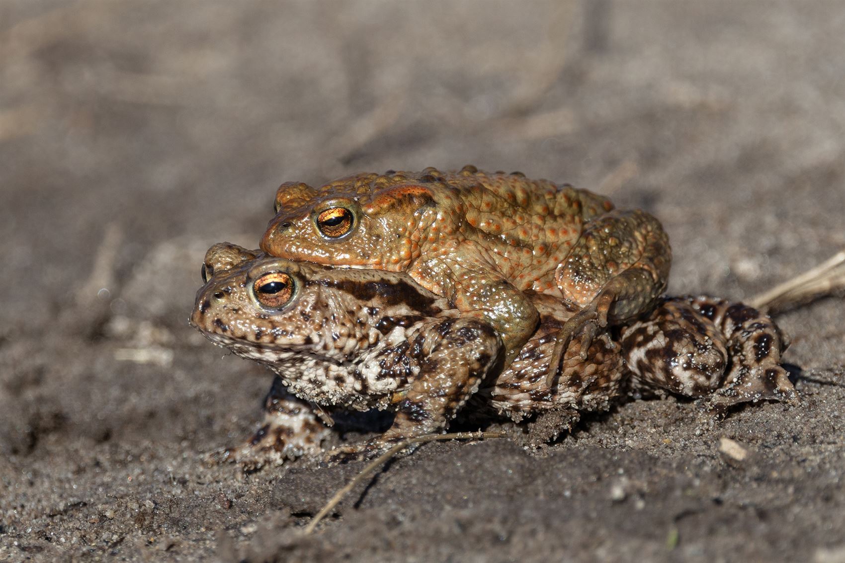 wereldtop van de springsport samenbrengt. Maar gisteren had Rik ook oog voor iets véél kleiners. Zijn oog en daaropvolgend ook zijn lens vielen op twee amfibieën die duidelijk andere prioriteiten hadden dan springparcoursen. Terwijl ze zich in het zand warmden, hoorde hij als het ware de ene aan de andere vragen: “Ben jij al gebruind?”