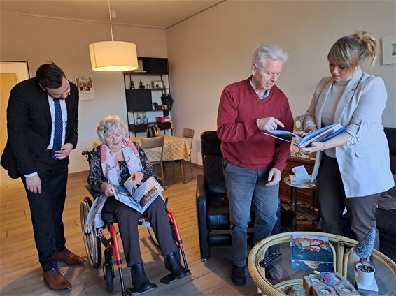 Twee bewoners, die meeschreven aan de verhalen, overhandigden gisteren het boek officieel aan burgemeester Dennis Fransen en schepen Els Kuppens.