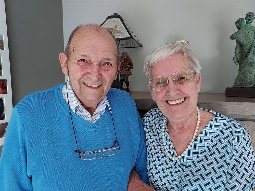 Thieu Baeten (89) en Madeleine Janssen (84) in het huwelijksbootje. Gisteren, exact 65 jaar later, vierden ze hun briljanten bruiloft. Thieu werkte jarenlang bij DAF terwijl Madeleine in het ziekenhuis werkte. Ondertussen wonen ze al verschillende jaren in de Hoekstraat en hebben ze 2 kinderen, 4 kleinkinderen, 2 achterkleinkinderen en het 3e achterkleinkind is op komst. Ze kregen het bezoek van een afvaardiging van het college van burgemeester en schepenen om hen te feliciteren met hun briljanten jubileum. Van harte gefeliciteerd!
