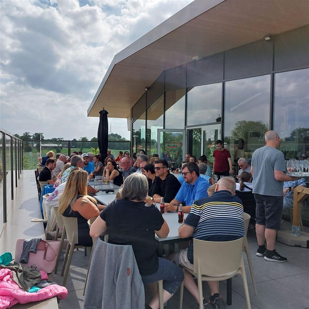 Kadijk werden de buren ontvangen met een glaasje champagne, gevolgd door een barbecue. Vele nieuwe gezichten, nu ook een deel van de