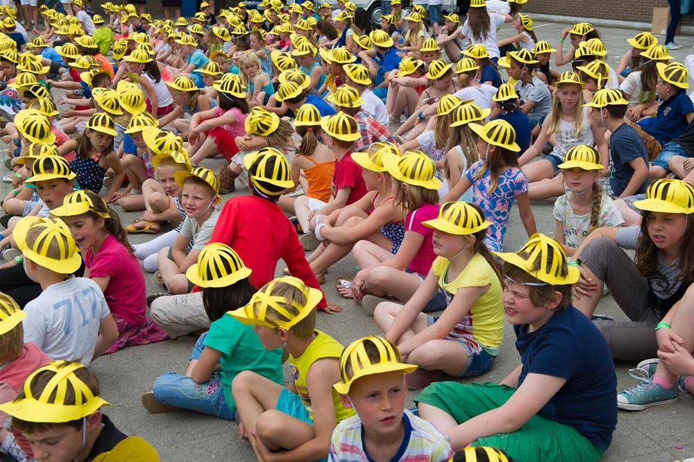 eerstesteenlegging plaats van de nieuwe school, een project van "Scholen van morgen". Het was een feestelijke aangelegenheid met een optreden van alle leerlingen, waarbij door de genodigden en de leerlingen