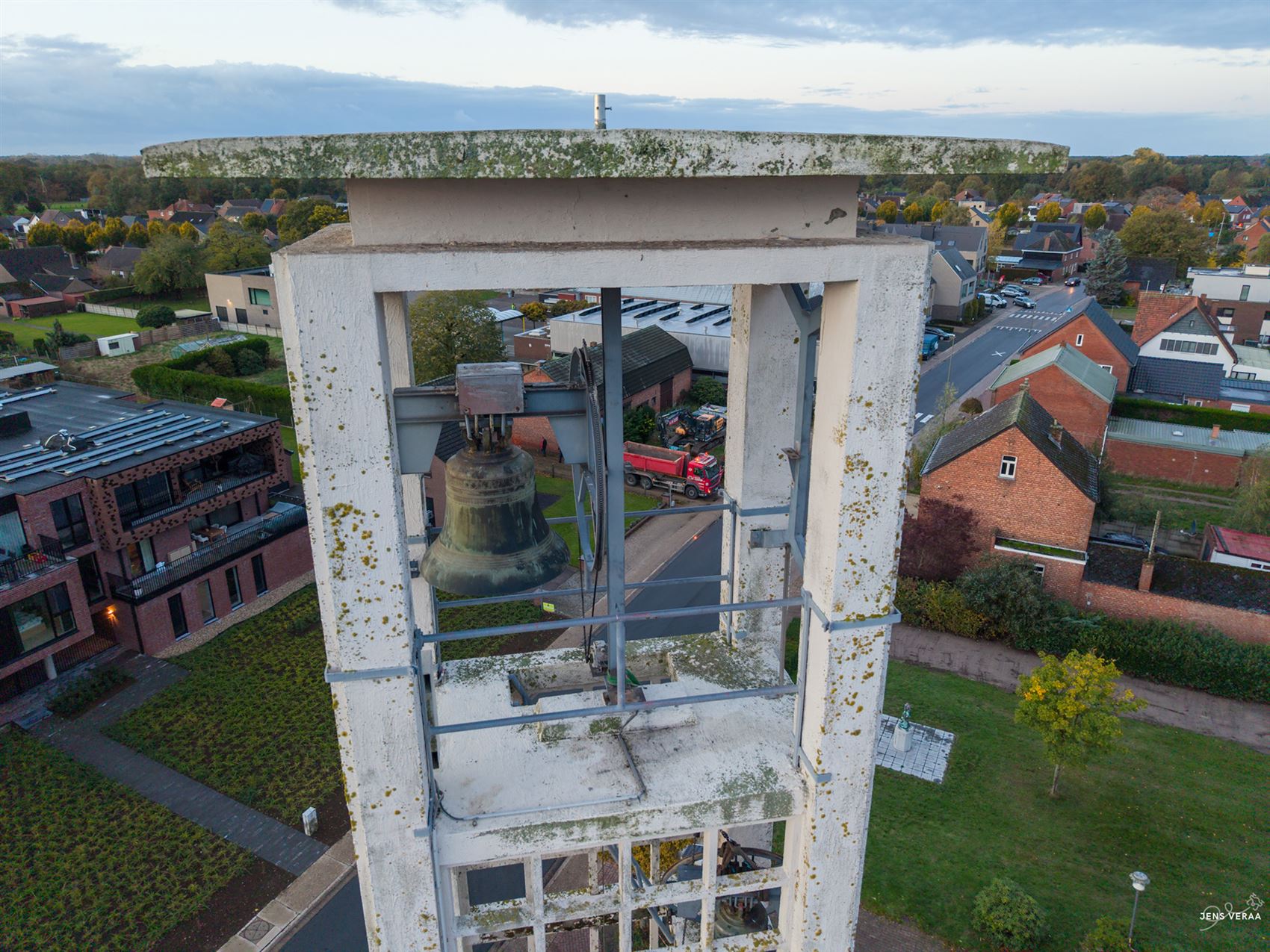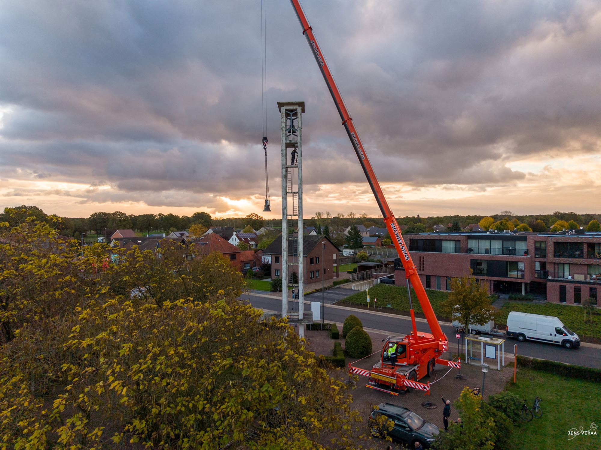 weghalen van de kleine klok bij te wonen. Want wat bleek: de klok was… al weg! De verbazing werd nog groter toen een grote kraanwagen arriveerde en de machinist zich afvroeg waar die bewuste klok was die hij naar beneden moest halen.