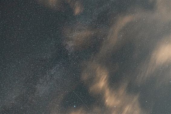 Jens Veraa lag gisteren al met zijn ogen én camera gericht naar de hemel te kijken, en hij 'had prijs'. Hoe Jens zo'n foto maakt? Simpel: sluitertijd van de camera instellen op 30 seconden, knop indrukken en dan een halve minuut wachten en hopen dat er in die tijdspanne een 'vallende ster' is langs gekomen. En zo niet: opnieuw!