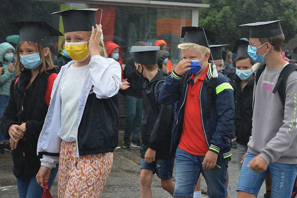 basisschool Helibel Herent in de gietende regen de meisjes en jongens van het 6e door alle medeleerlingen, kleuters, leerkrachten en ouders uitgewuifd. Ze zeggen daarmee de lagere school vaarwel. De kleuters van K3 mochten in de gietende regen nog een laatste keer aanheffen voor het traditionele vakantielied…