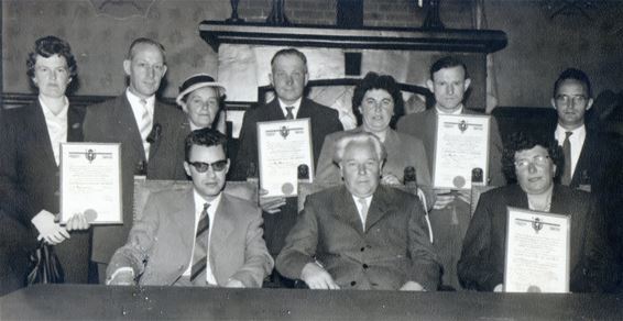Op de foto hierboven werd Henri gelauwerd als 'Laureaat van de arbeid'. Wanneer dat juist gebeurde is niet geweten, maar het zou in de periode van 1959 tot 1962 moeten zijn geweest, aldus François. 1959 omdat Jan Geelen burgemeester was (dat was hij van 1959 tot 1969) en 1962 omdat toen Henri overleed.