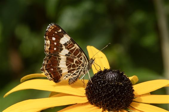 Landkaartje (Araschnia levana). Van deze soort vliegt er een voorjaars- en zomergeneratie, die in kleur en tekening van elkaar verschillen. De rupsen leven op brandnetels.