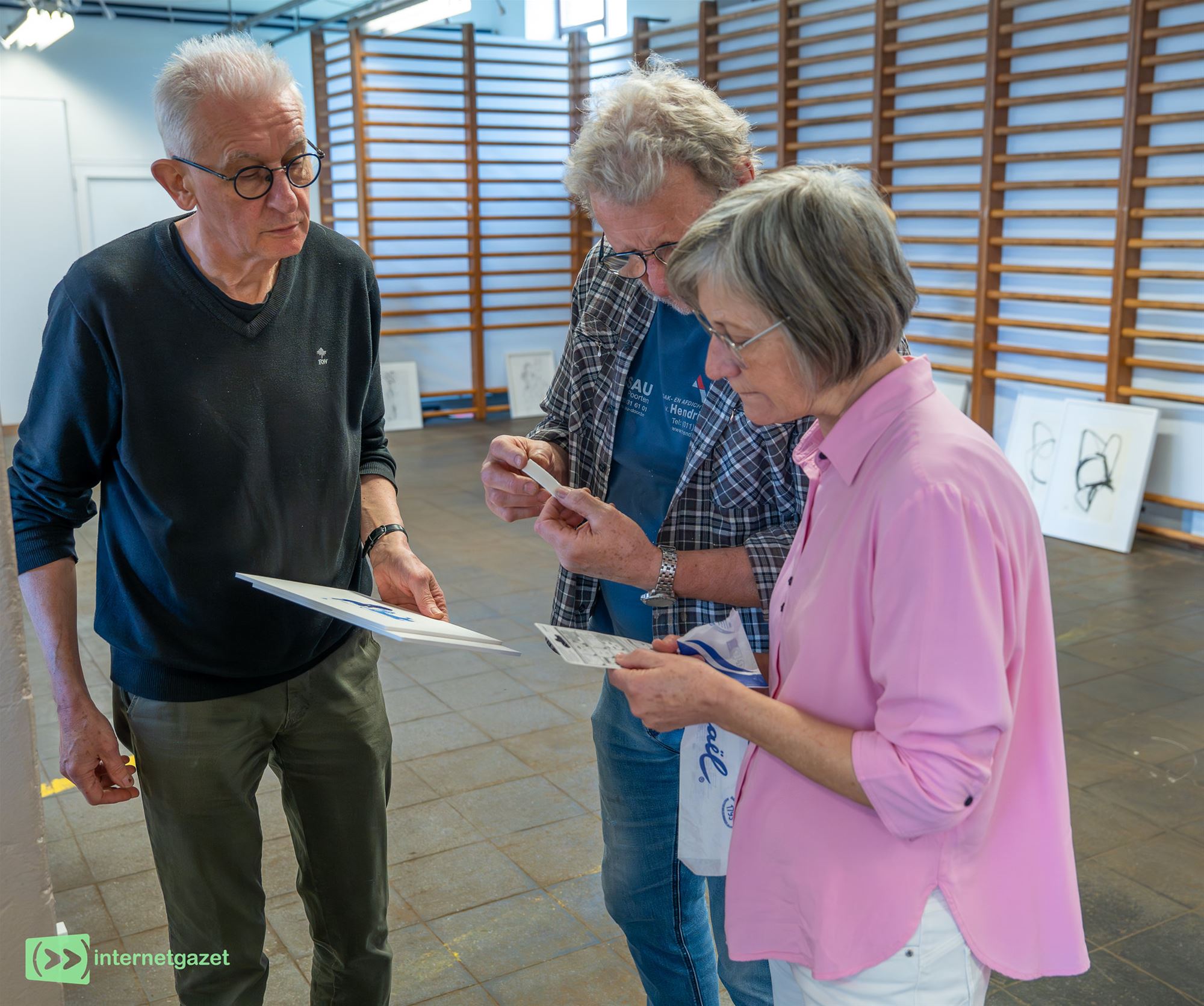 Afgelopen woensdag spraken we de leden die de eerste aanzet gaven tot de opstelling van hun tentoonstelling. De werken werden even op de grond gezet, waarna ze er een nachtje over gingen slapen hoe ze die daags nadien zouden ophangen.