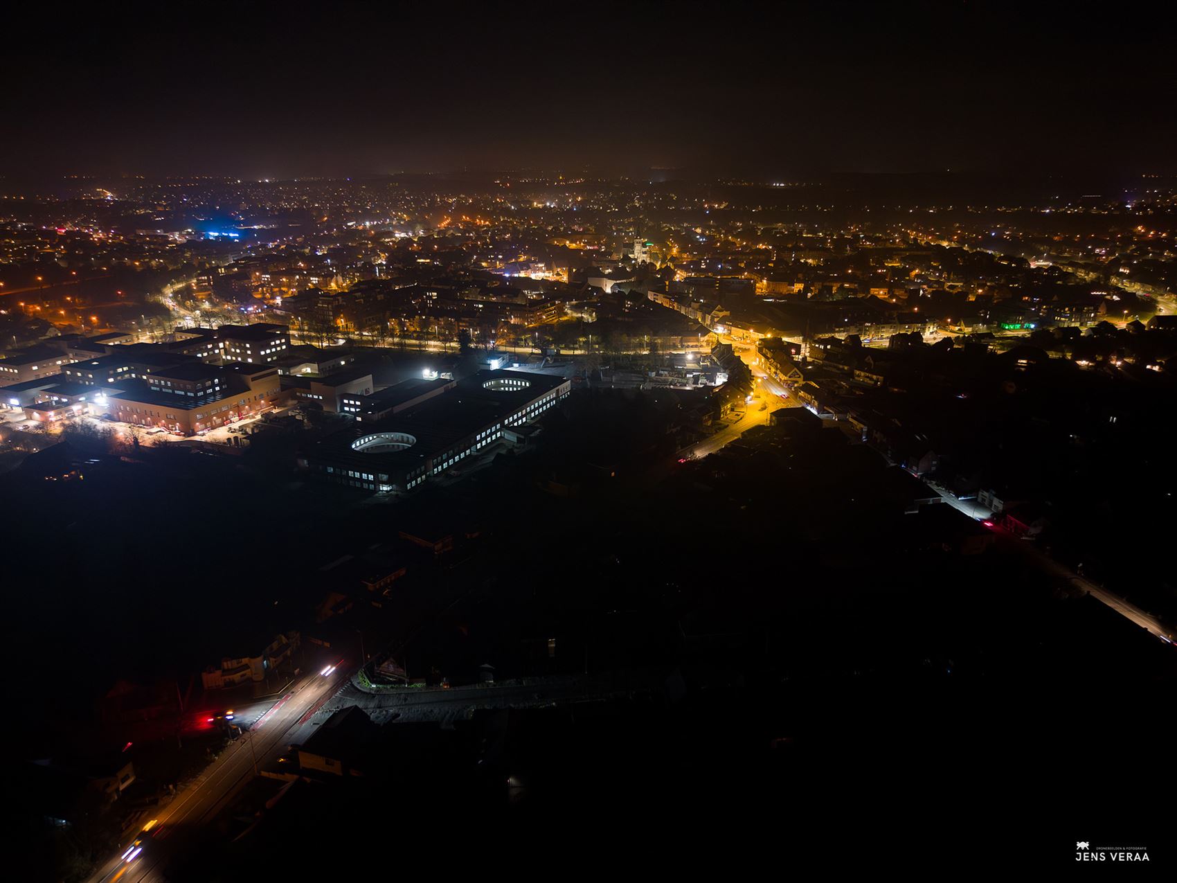 Jens Veraa maakte. Het ziekenhuis en het centrum van Overpelt baadt in het licht, maar de straten ervoor zijn donker. Klokslag 20u ging het licht terug aan...