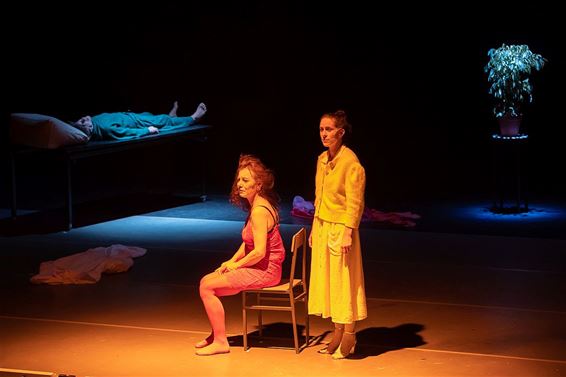 Het stuk, dat gisteravond in Palethe werd gespeeld, is een tragikomische vertelling over leven en dood, en hoe we altijd schipperen tussen slaan en zalven, leed en troost.