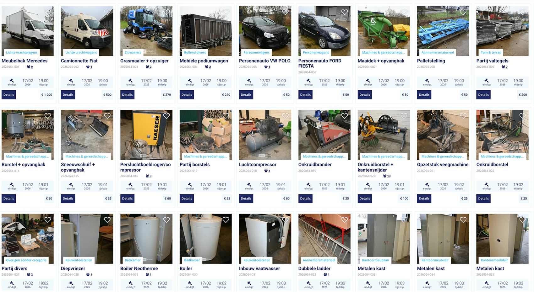 De gemeente Pelt organiseert een openbare online veiling van een reeks buiten gebruik gestelde goederen. Het gaat om een zeer gevarieerd aanbod, met onder meer machines, gereedschappen, voertuigen, meubels en allerlei andere materialen.