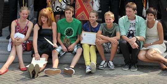 Henri Frederix en Julienne Truyers, uit de Schansstraat. Toen ze 50 jaar geleden trouwden, was het ook prachtig weer, zegden ze. Ze hebben drie kinderen en zes kleinkinderen. Met de familie werden Julienne en Henri op het gemeentehuis ontvangen voor een receptie, hen aangeboden door het gemeentebestuur.