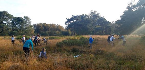 de pollen van het pijpenstrootje uit zodat de heide kan profiteren van de opengekomen plekjes. Ze kregen ook informatie over het ontstaan van het heidelandschap en waarom we nu aan natuurbeheer moeten doen om deze heide in stand te houden. Vele soorten dieren hebben zich aangepast aan de specifieke heidebiotoop. Alleen wanneer we de kwaliteit van deze heidepercelen behouden, kunnen de heidevlinder, de levendbarende hagedis, de nachtzwaluw, de boomleeuwerik,... hier hun leefplek vinden. De kinderen vonden het super interessant en maakten een hele plek vrij van het pijpenstrootje. Wat een ijver!