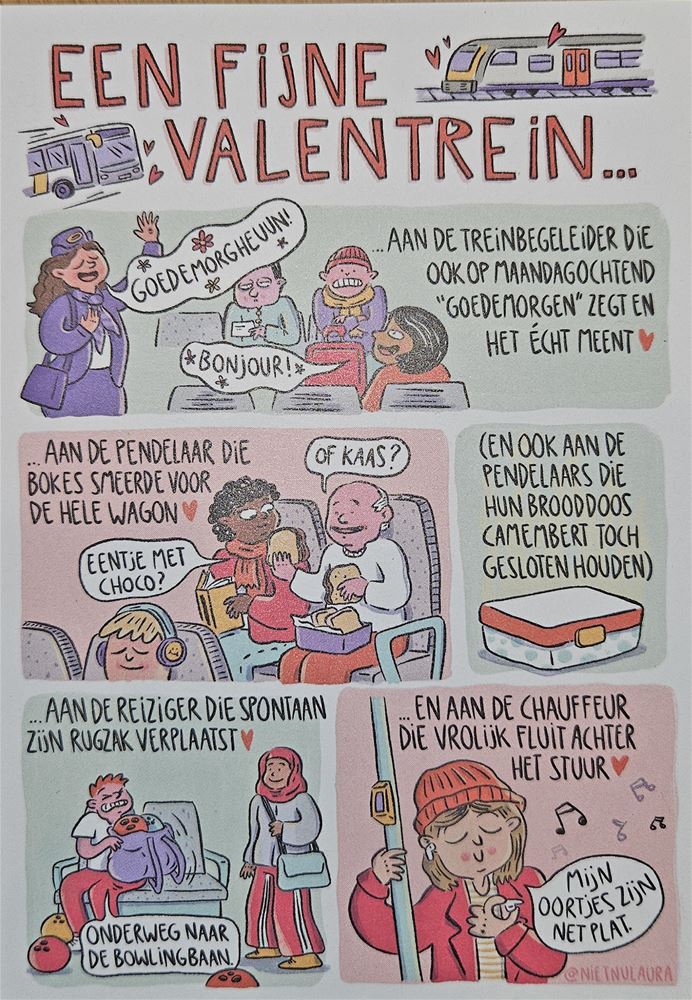 “Op Valentijn willen we zowel de reizigers bedanken als het personeel van trein, tram en bus dat ons elke dag op onze bestemming brengt. Allemaal maken ze elke dag het verschil”, zegt Stefan Stessens van Groen Pelt. “Kiezen voor het openbaar vervoer is kiezen voor gezondere lucht, vlotter verkeer en minder CO₂. Dat verdient vandaag een extra merci.”