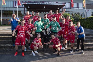 Robin Schoenakerin de basis op de cirkel te zetten. De reden was niet omdat de ‘echte’ cirkelspelers niet goed genoeg zijn, maar wel omdat de snelle omschakeling van verdediging naar aanval van Bevo geneutraliseerd moest worden! Door Schoenaker op de cirkel te zetten hoefde Pelt niemand te wisselen voor de dekking en zo slaagden we erin het gevaarlijkste wapen van Bevo, de tegenaanval, te neutraliseren. Sterk staaltje tactiek van onze coaching-staff. Maar ook in aanval zag het er best goed uit, al werd er in de eerste helft nog veel gemist, maar met 34 doelpunten op verplaatsing kan je thuis komen! Één derde (!) van die productie kwam uit de gouden handjes van Bartek Konitz. Bartek werd vooraf aangekondigd als een topper in verschillende media maar de sympathieke Poolse Nederlander moest zich op 5 weken tijd wel helemaal aanpassen – zowel sportief als maatschappelijk! En dus stond er wel wat druk op de ketel om zich meteen te profileren. En of hij dat gedaan heeft! Hij leverde een glansprestatie af! In het hart van de defensie, slim anticiperend, vlammende schoten uit 2e lijn of 1 tegen 1, magistrale assists,… Het was een complete prestatie van Bartek. Mocht dat nog niet het geval geweest zijn, heeft hij gisteren heel handbalminnend Pelt (en velen daarbuiten) op 60 minuten tijd helemaal voor zich gewonnen. Maar het zou de andere jongens te kort doen om hen niet te betrekken in deze mooie overwinning. Het was een echte teamprestatie! Alle jongens in de selectie trokken aan hetzelfde touw, van kiné tot en met Youri Denert die door blessure nog op de tribune moest plaatsnemen. Na de eerste helft was het met 16-16 nog allemaal te doen in de tweede helft. Tussen de 40e en 50e minuut diepte Sporting de kloof uit tot 23-30, na 5 doelpunten op een rij van Konitz en spectaculaire reddingen van onze goalie Thijs Van Leeuwen. Timmermans, die al goed doorgewisseld had, kon nu ook onze jonge gasten nog meer speelminuten gunnen! Samen met de ervaren jongens plaatsten zij de kers op de taart! De overwinning kwam niet meer in het gedrang en met een vliegertje dat eindigde met bal én man in doel (hoe hoog blijft Tasevski springen?), vierde Sporting de overwinning in Panningen. Sporting Pelt won dus heel knap in Bevo met 29-34 en heeft zijn start alvast niet gemist.