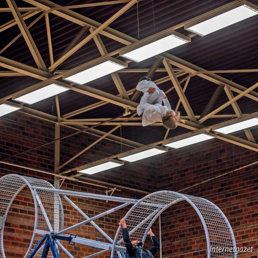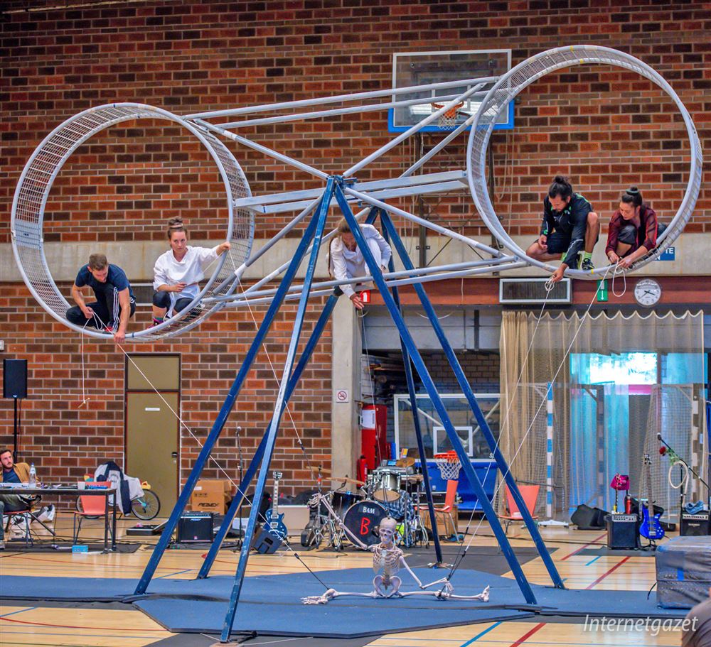 Galapiat Cirque. Zij resideerden de voorbije weken in het Dommelhof ter voorbereiding van hun voorstelling ‘La Roue de L’Infortune’. Net voor ze Pelt terug verlaten voor Frankrijk toonden ze hun voorlopige versie al aan een beperkt publiek. Hopelijk zien we ze nog terug, misschien met Theater op de Markt Pelt?