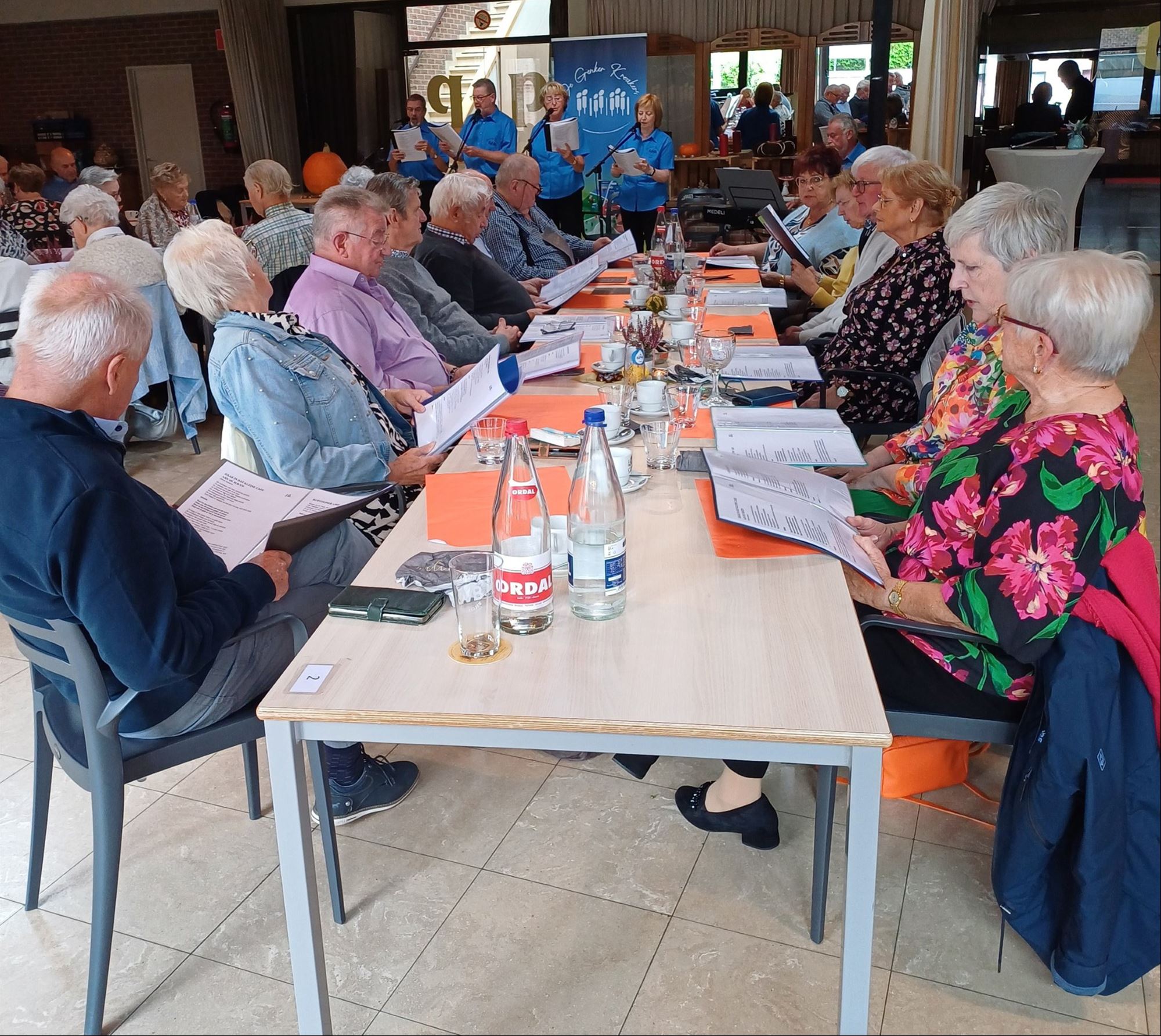 Genkse Krakers. Met liedjes uit hun jeugd zongen de aanwezigen enthousiast mee. Na de koffie en de traditionele tombola keerde iedereen tevreden huiswaarts — een geslaagde namiddag vol sfeer en samenzijn.
