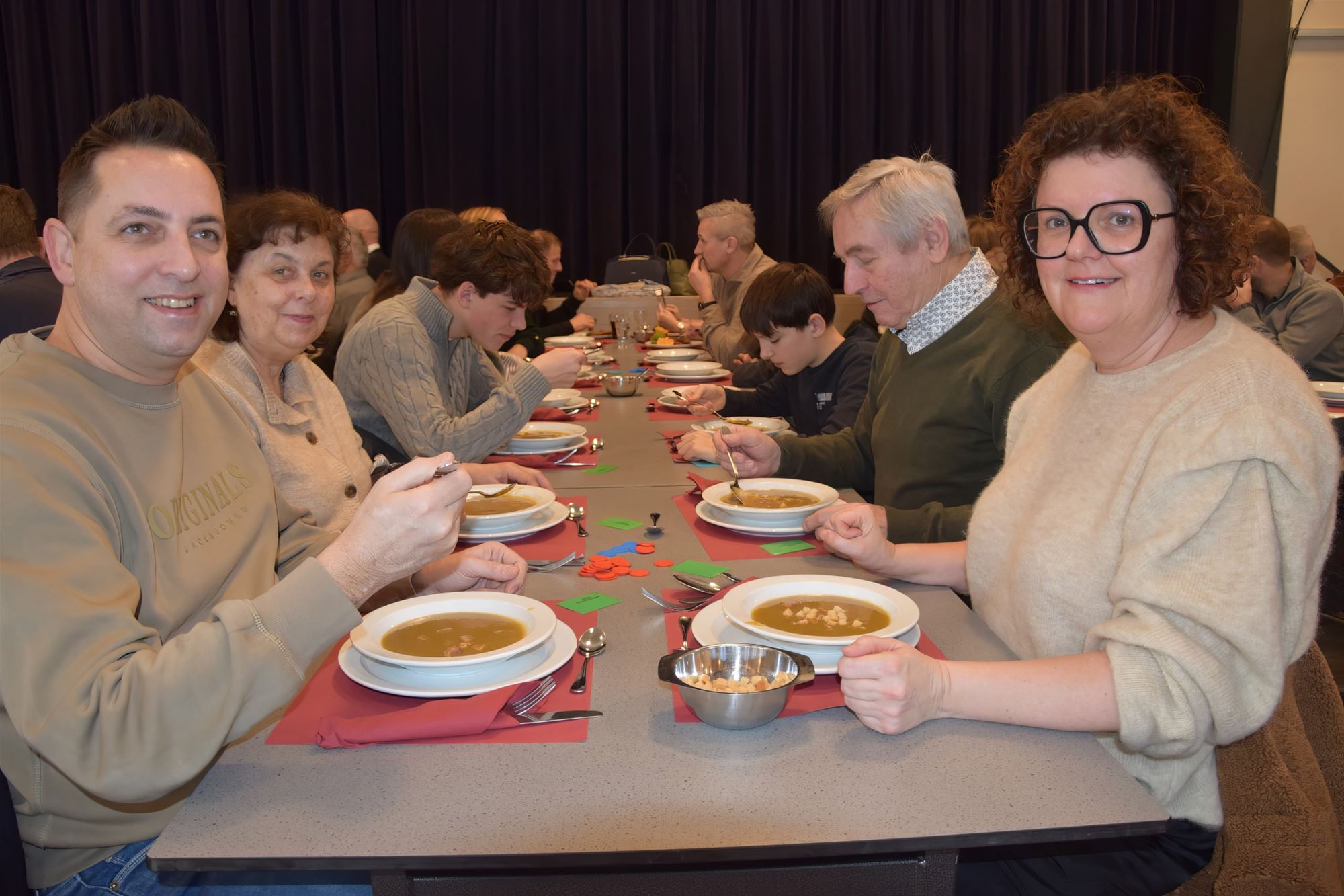 Het bestuur maakte er een erezaak van om voor dit eetfestijn zoveel mogelijk zelf klaar te maken: alles werd vers bereid en gebakken. Alles liep zoals een goed geoliede machine en zo kregen de bezoekers een heerlijke warme traditionele maaltijd geserveerd.