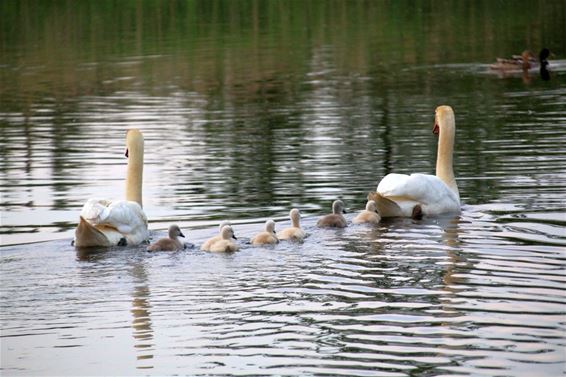 zonen ging werd de zevende Boudewijn geheten, naar de koning. Dàt waren nog eens tijden. Wie dezer dagen in het Hageven gaat kijken, kan zien dat het gezin Knobbelzwaan ook weer zeven kleintjes heeft. Maar of het zeven zonen of zeven dochters zijn?