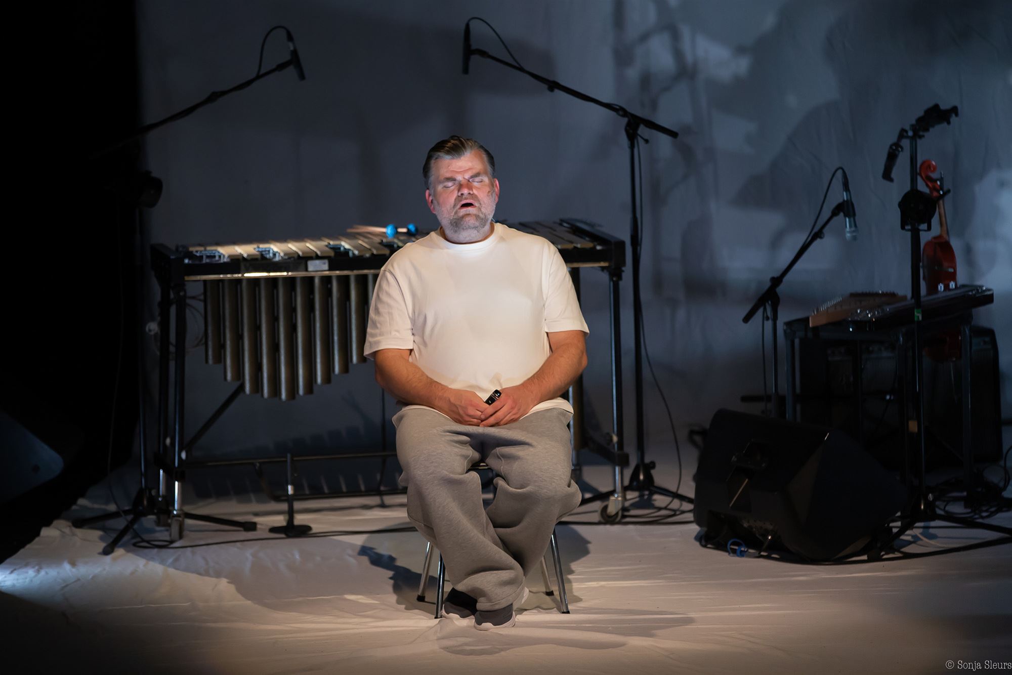 Hij vertolkt een man die opgroeide bij een narcistische moeder en als onderhoudsman belandt op een gigantische, rond de aarde zwevende server waar AI zichzelf blijft ontwikkelen. Van daaruit spreekt hij de wereld toe. Het levert indringend muziektheater op dat schuurt en beklijft.