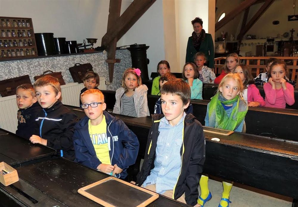 Ze keken met bewondering en verwonderd hoe de kinderen van zestig, zeventig jaar geleden moesten leren. “Meester” Jos Vandervelden trachtte zo nauwkeurig mogelijk de talrijke vragen van de leergierige kinderen te beantwoorden. Dat was eens wat anders dan een computer of een tablet!