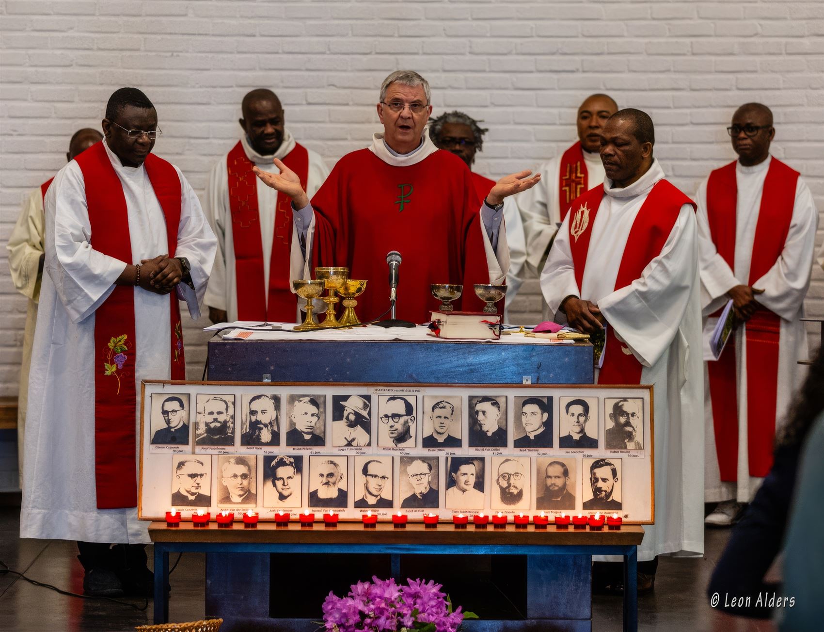 Vanduffel. De eucharistieviering werd voorgegaan door Mgr. Bonny, bisschop van Antwerpen. Ook Mgr. Ngoy, bisschop van Kongolo, was aanwezig. Hij bedankte Leon Alders, neef van pater Pellens, om als eerste van de families van de vermoorde paters na 60 jaar een bezoek te brengen aan Kongolo. Hij hoopte in de toekomst nog bezoekers te verwelkomen. Hij vertelde nog over de warme ontvangst die hij in Pelt had gekregen. Hij was zeer opgetogen over de bouw van het studiecentrum die met de hulp van diverse organisaties en particulieren tot stand aan het komen is. Verder kijkt hij uit naar de samenwerking die er werd afgesproken met de PXL in Hasselt.