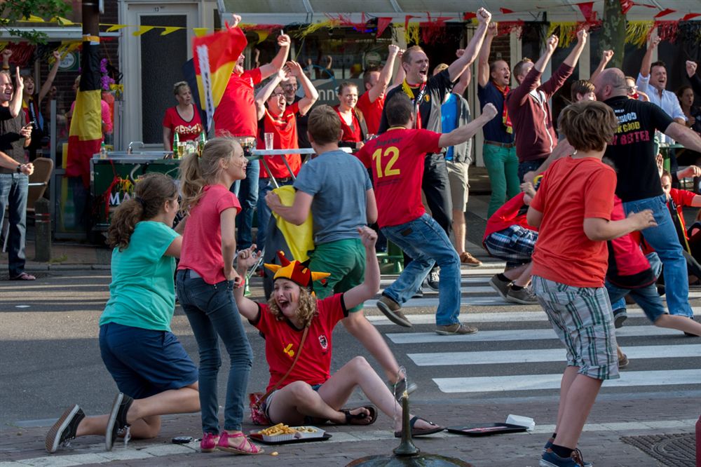 de WK-wedstrijd tussen België en Rusland te volgen op groot scherm, maar de terrasjes in de